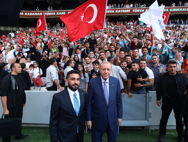 Cumhurbaşkanı Erdoğan, Gazze’deki vahşete ilk günden itibaren en güçlü tepki veren ülkenin Türkiye, mazlumların hakkını korkusuzca savunan hükûmetin Türkiye Cumhuriyeti hükûmeti olduğunu belirtti. Cumhurbaşkanı Erdoğan, terör devleti İsrail’in karşısında dimdik duran iktidarın da kendi iktidarları olduğunu vurgulayarak şöyle konuştu: “Şunu sizin ve ailelerinizin özellikle bilmesini isterim; Gazze’deki kardeşlerimizi bir an olsun yalnız bırakmadık. 101 bin tonu aşan insani yardımlarımızla kardeşlerimizin yanında olduk. İsrail ile ticareti tamamen durdurarak Filistin halkının yanında olduk. Diplomatik temaslarımızla, uluslararası alandaki çabalarımızla Gazze’nin yanında olduk. Daha burada sayamayacağımız nice destekle, nice yardımla Gazze’nin ve Gazzeli mazlumların yanında olduk. İsrail’den aferin almak için Filistin direnişine terör iftirası atanlara rağmen Gazze’nin kahraman evlatlarına sırtımızı dönmedik. Tehdit edildik, gizli açık pek çok operasyona maruz kaldık ama hiçbir zaman Filistin’i ve Filistin davasını savunmaktan vazgeçmedik.”