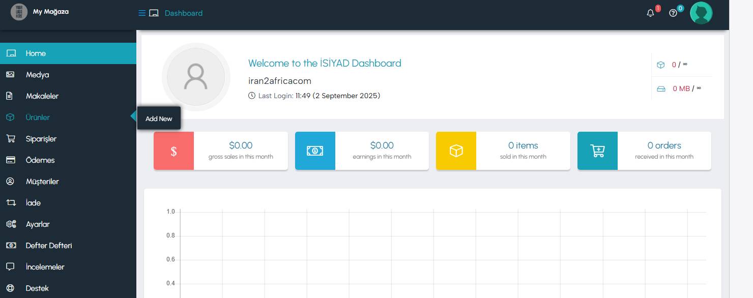 Dashboard üzerinden gerekli tüm bilgileri görebilir ve mağazanızı yönetebilirsiniz.