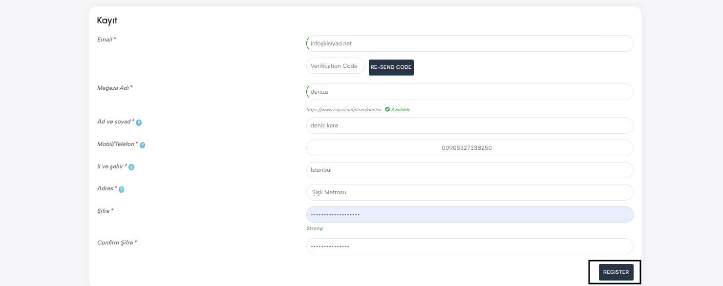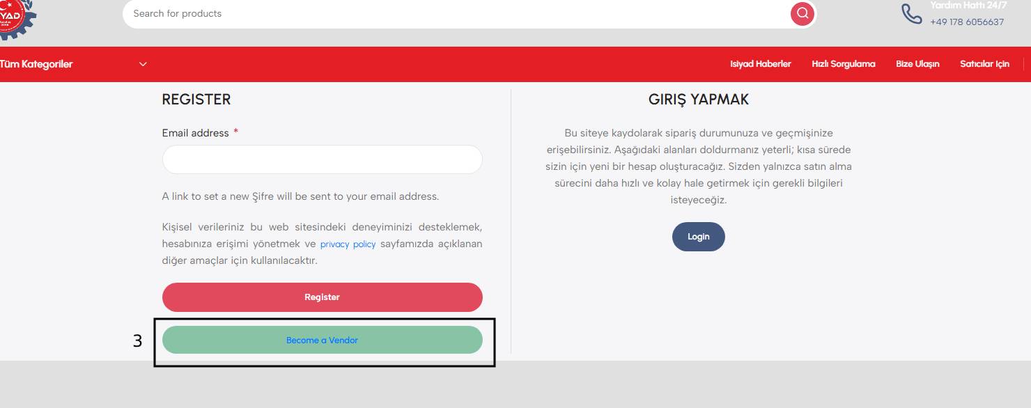 - Siteye satıcı olarak kayıt olmak için lütfen 1’den 8’e kadar olan adımları tamamlayınız.
