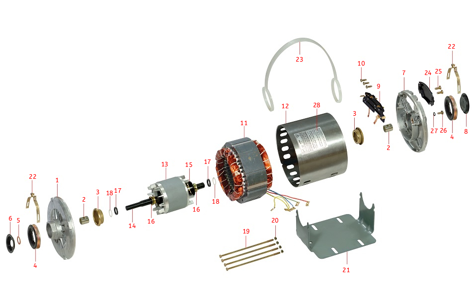 Tip | Çerçeve boyutu | Çıkış Gücü | Çıkış Gücü | Anma Gerilimi | Anma yükte hız | Anma Akımı | Anma Torku | Güç faktörü | Başlangıç / Anma Akımı | Başlangıç / Anma Torku | Bozulma / Anma Torku | Atalet momenti | Kutuplar |